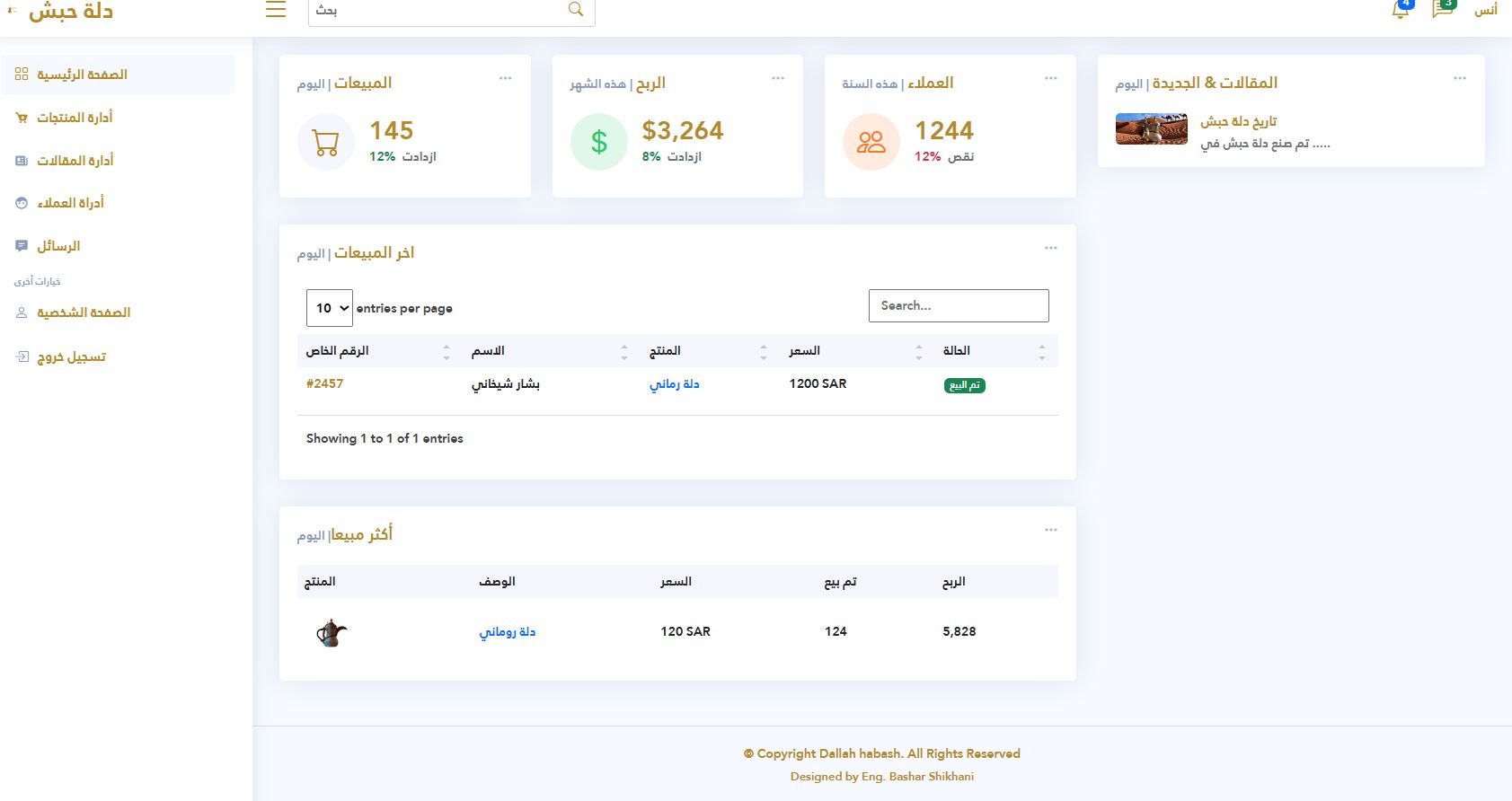 The website serves as a centralized hub for Dallah Habash products, offering a dynamic dashboard for efficient website management, product additions, and a range of other convenient services. Within this platform, I cater to different user roles, ensuring seamless operations: Manage client data, product listings, blog content, can receive and respond to messages, and can update profile details. I prioritize data security by encrypting sensitive information like usernames, passwords, and more, safeguarding confidentiality and protecting user data.