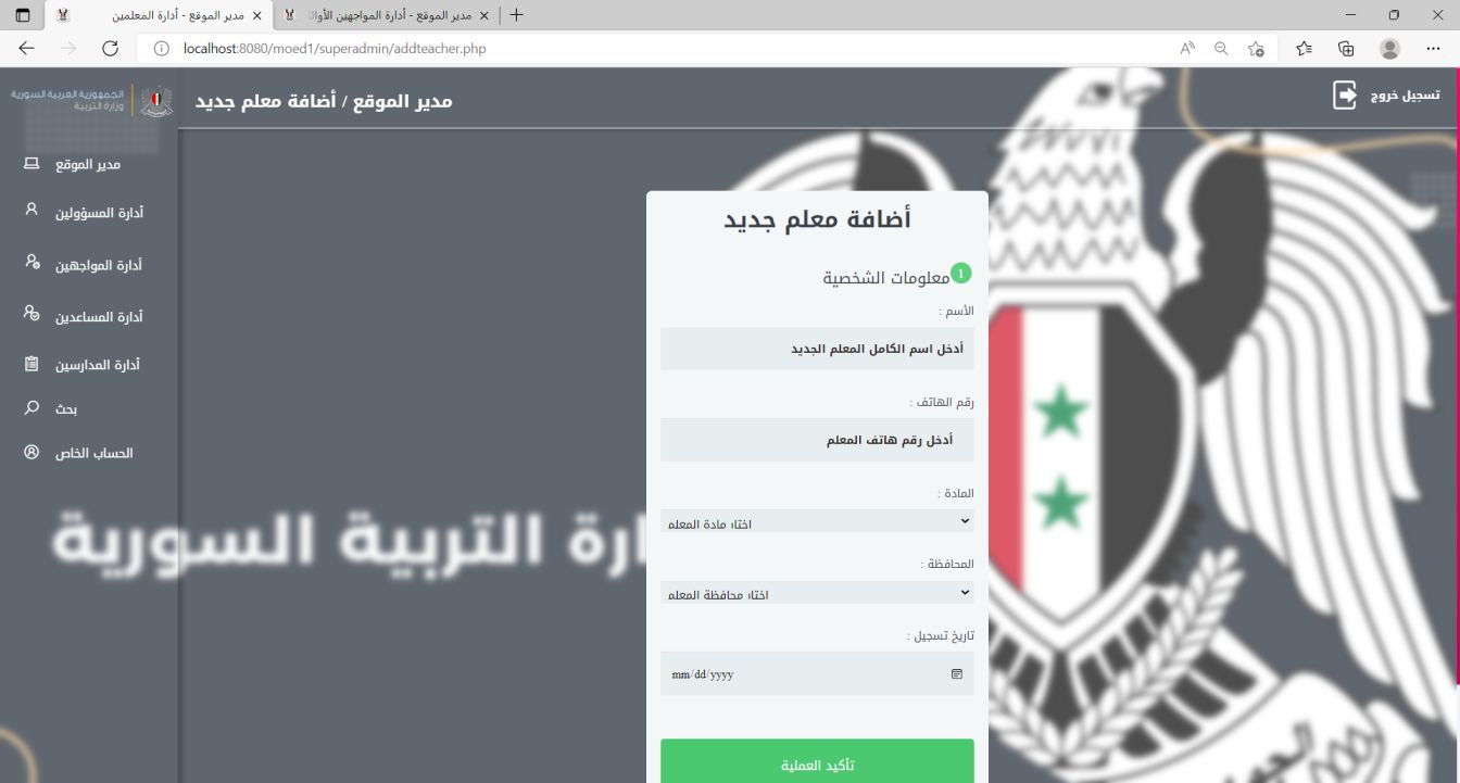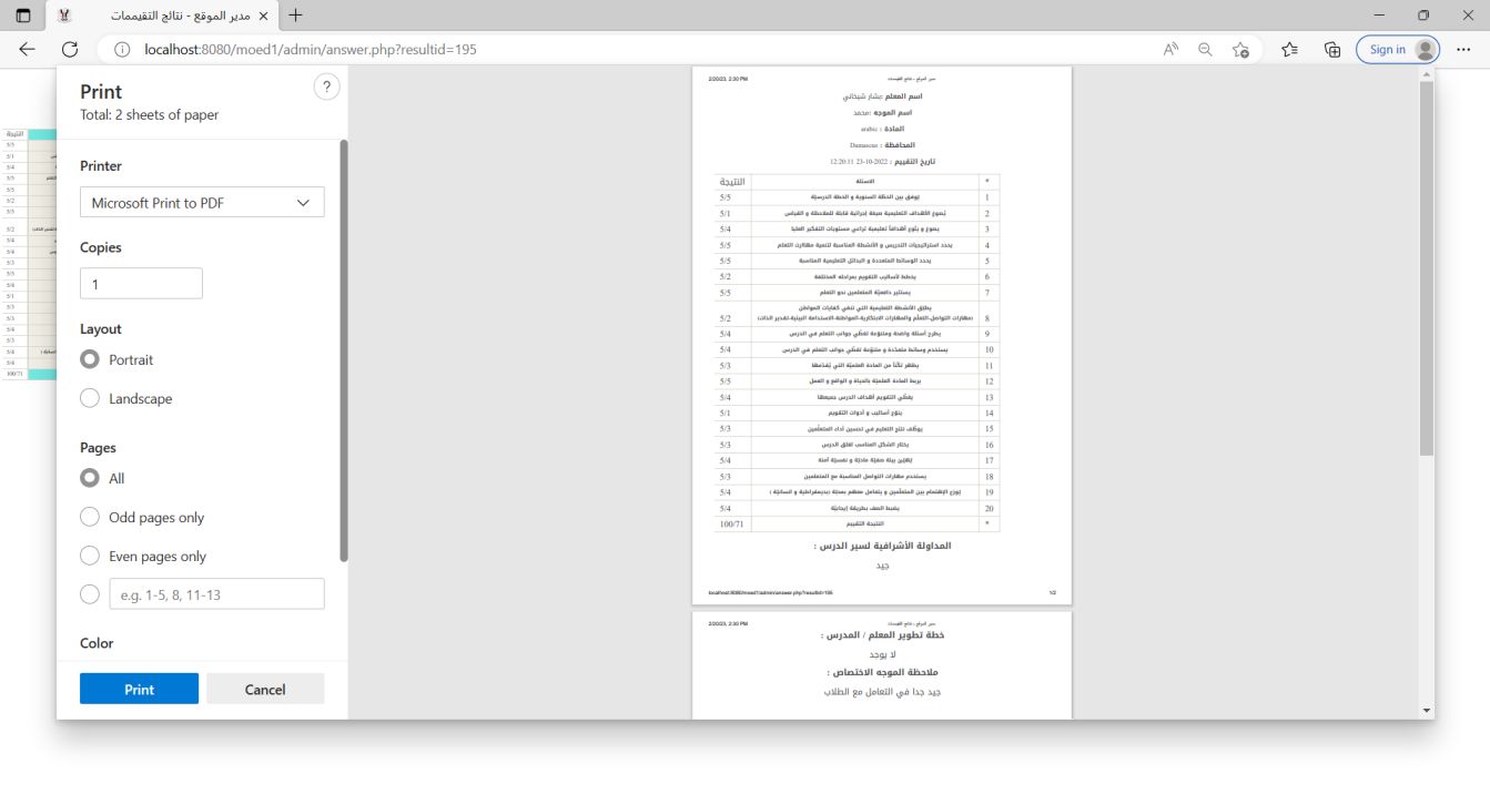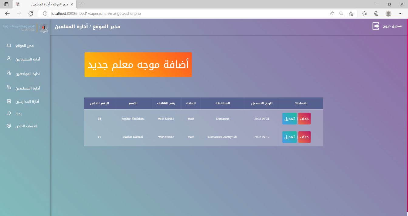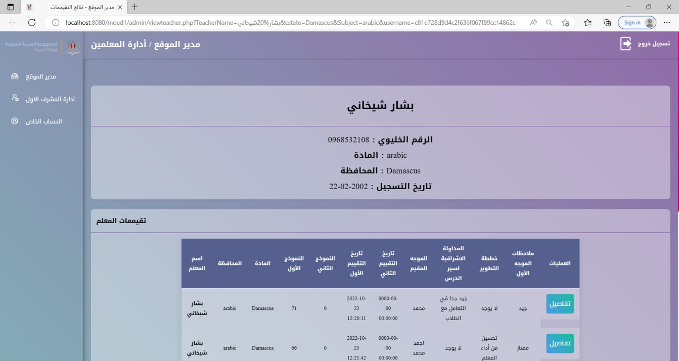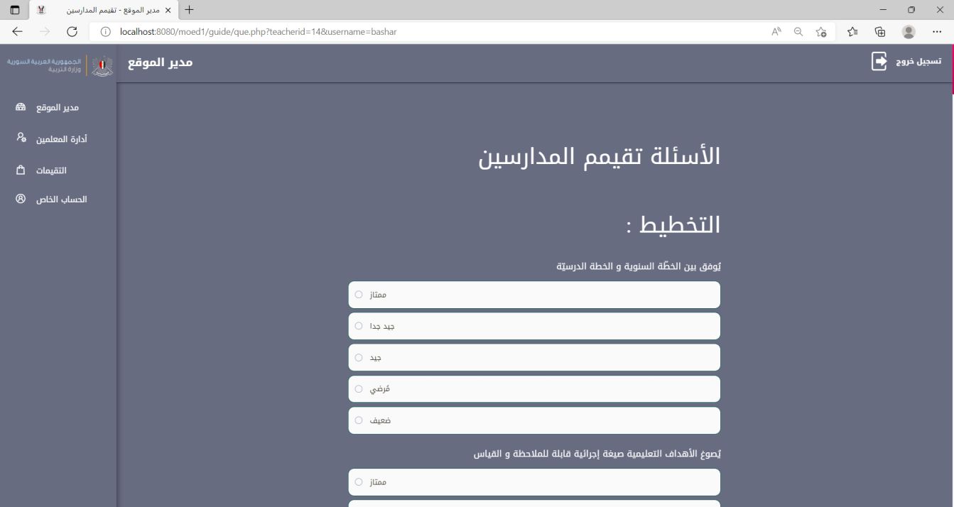 The Syrian Ministry of Education Teacher Evaluation System is a robust internal website designed to enhance the